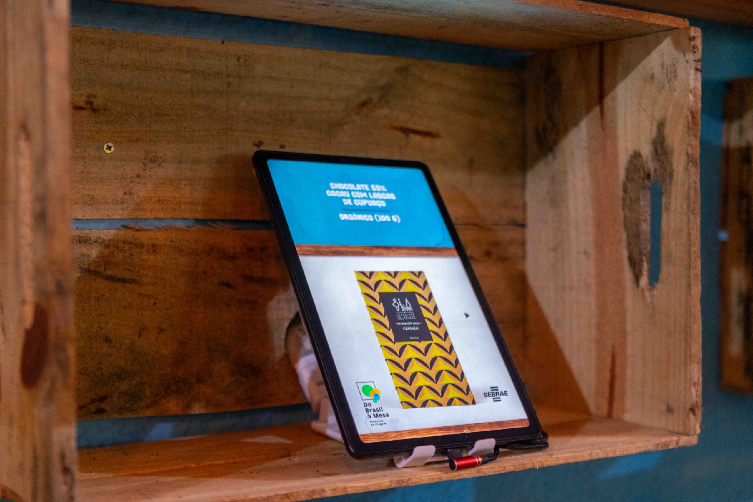 Para realizar a ação precisávamos conectar saberes culinários ancestrais a uma plataforma digital similar a um e-commerce, criando uma experiência em que os visitantes se sentissem navegando no site enquanto percorriam o espaço do estande. A ação pretendia, simultaneamente, atrair o público consumidor para que comprasse através da ferramenta, mas também os produtores artesanais presentes no evento, para que se interessassem em expor seus produtos na vitrine virtual, aumentando o catálogo do projeto.